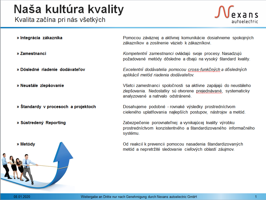 Deklarujeme ciele kvality, ktoré boli odsúhlasené so zákazníkom a zahŕňajú vývoj technických možností ako aj štandardy používané v odbore. Kvalita je dôvera v naše produkty a produktivitu nášho závodu.